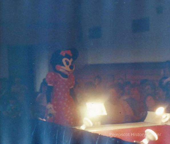 A color photograph of Mini Mouse making her way to the stage.