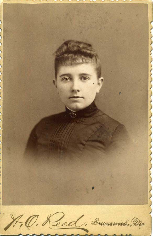 Black & white photograph of Minnie Bradbury Merrill.
