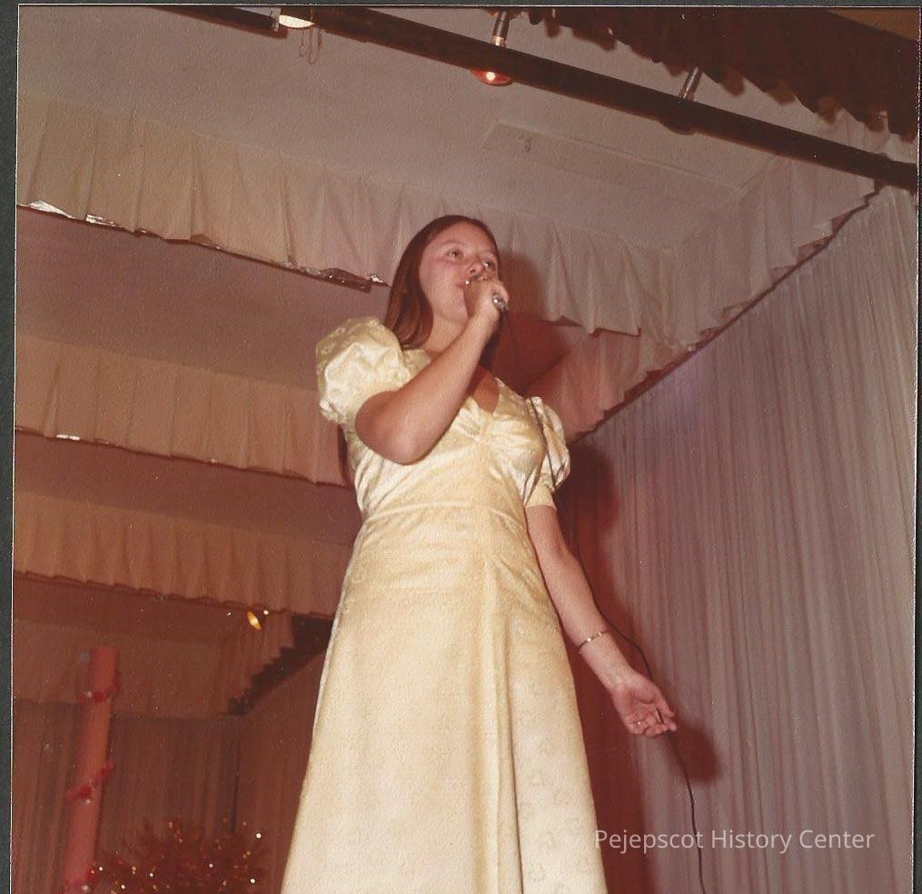 Last year's winner of Miss Congeniality Linda Hinckley presenting the trophy to this year's winner Jane Thiboutot Contestant #6.Collection