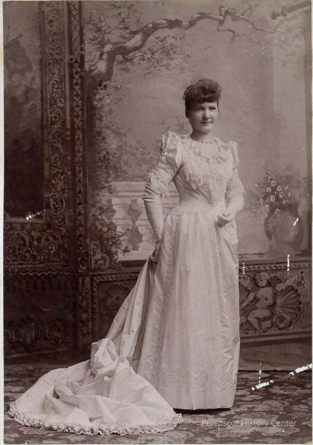 A B/W sepia photograph of Miss Lill Pennell in a wedding dress. Not dated.
