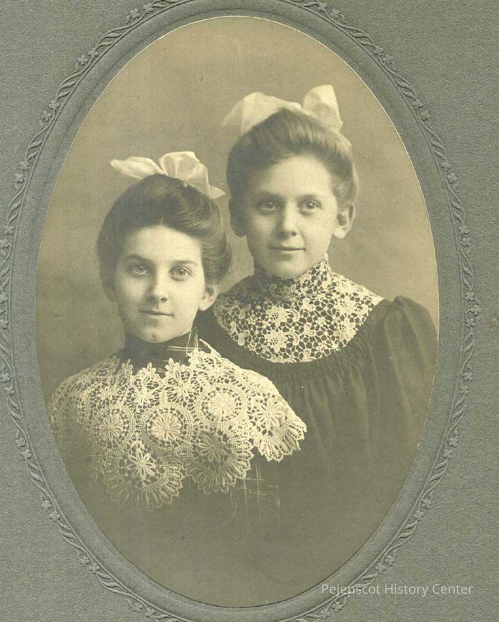A B/W photograph of two girls Miss Lill Pennell is on right. Girl on left is unidentified. Not dated.
