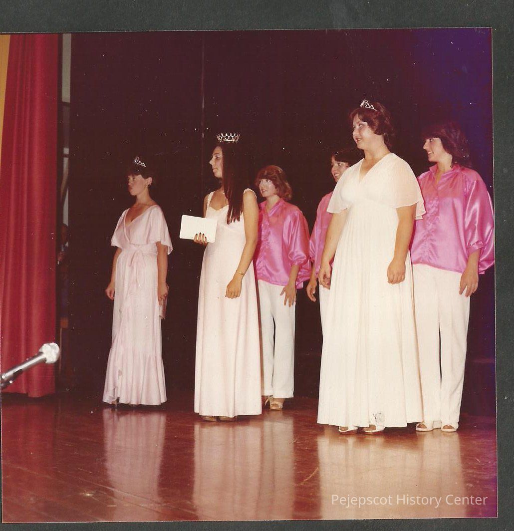 Sharon Hinckley, Phyllis Gaudreau, Lisa Grasmuck and contestants Ginger Smith, Stephanie Davis and Rita Thiboutot listening to Miss Maine give her message.Collection