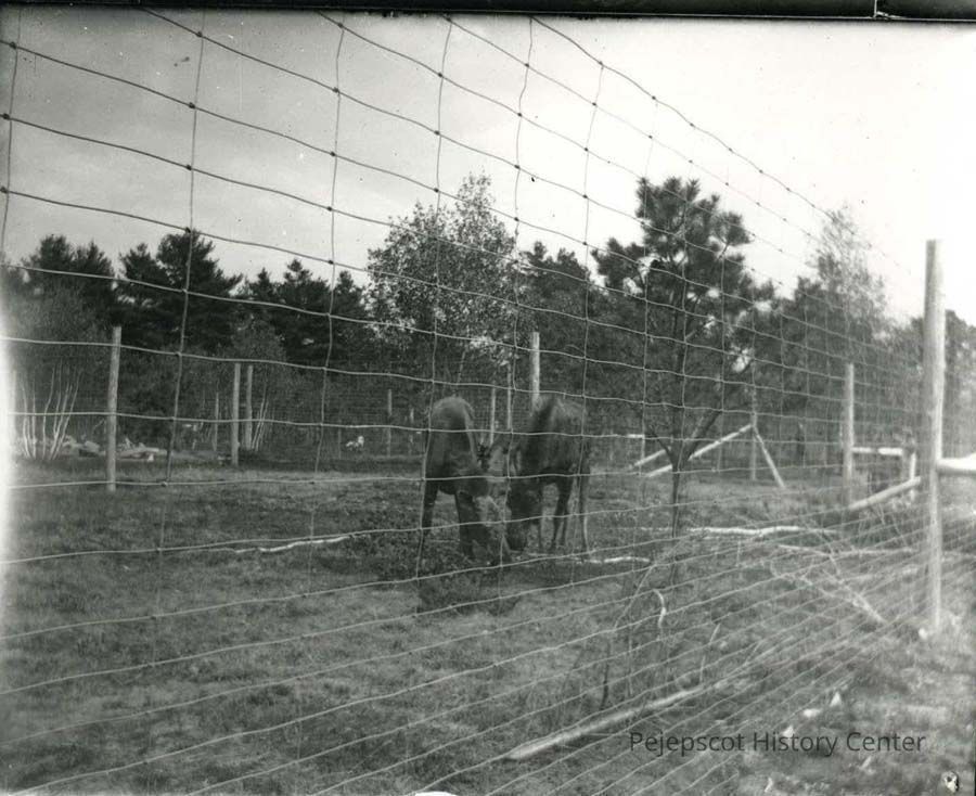 A B/W photograph of the moose at the zoo in Merrymeeting Park, made from glass plate negative.
