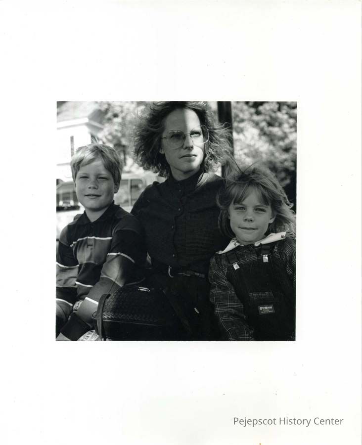 An undated black and white photograph of a mother and her two children sitting on the Brunswick Mall.