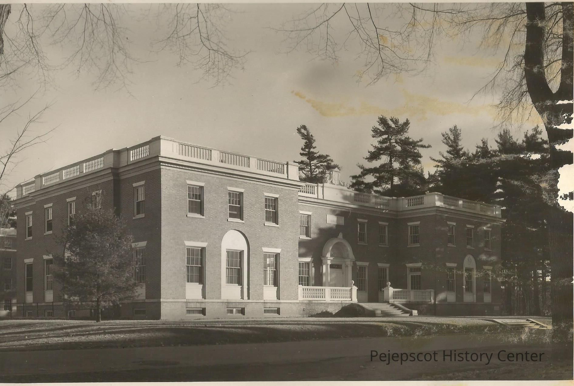 A B/W photo of Moulton Union at Bowdoin College. Undated