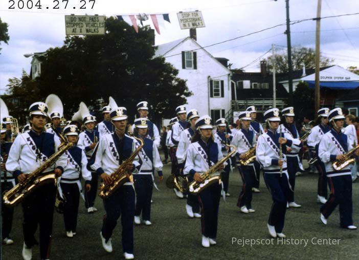 A color photograph of Brunswick's 250th Anniversary Parade (Oct 1989) showing the Mount Ararat Eagles Marching Band. Four views (.27 - .30).