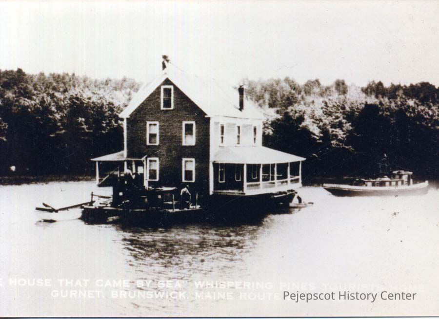 A color print copy of the house that came by sea, "Whispering Pines" was moved by Capt. Nickerson. See back of photo for more info. UndatedCollection