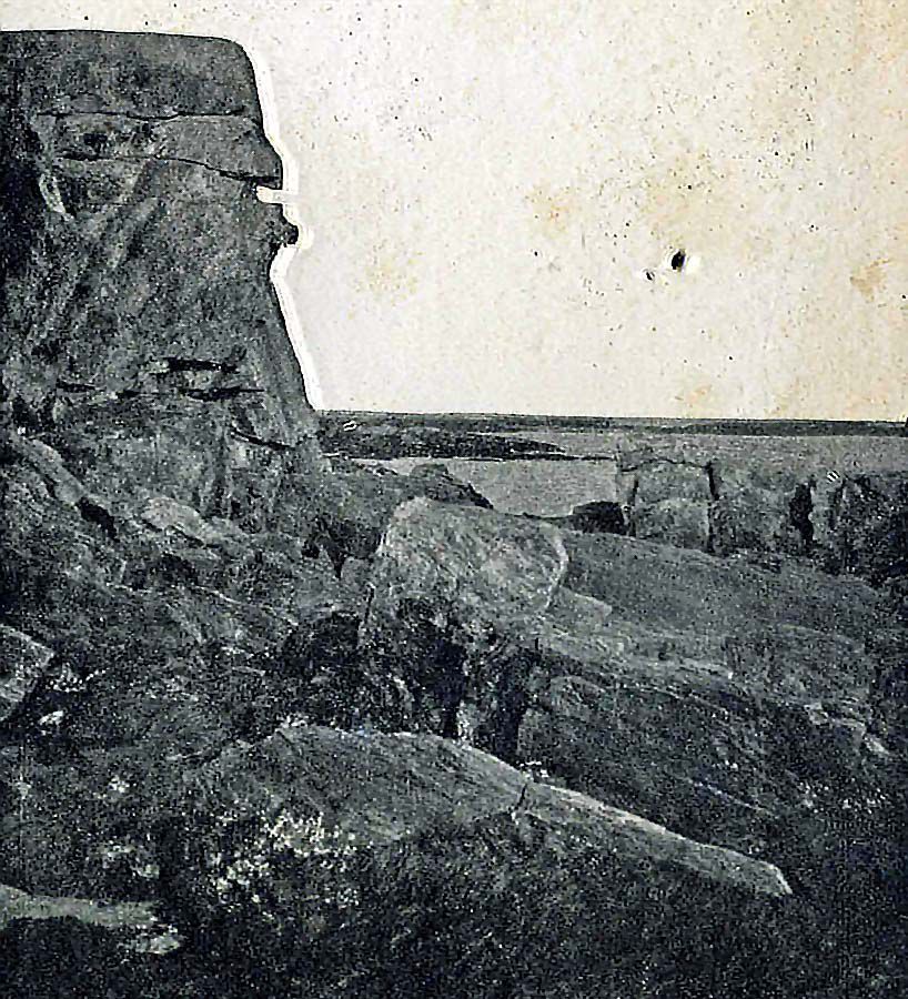 An undated B/W photograph of Mr. Bailey rock formation on Bailey Island, Harpswell, Maine.