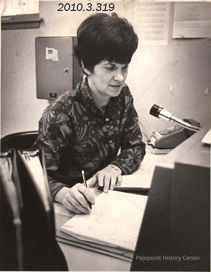 A B/W photograph of Mrs. Louise Lambert new dispatcher at the Brunswick Police Department. Photo was published 1/11/1973. Undated