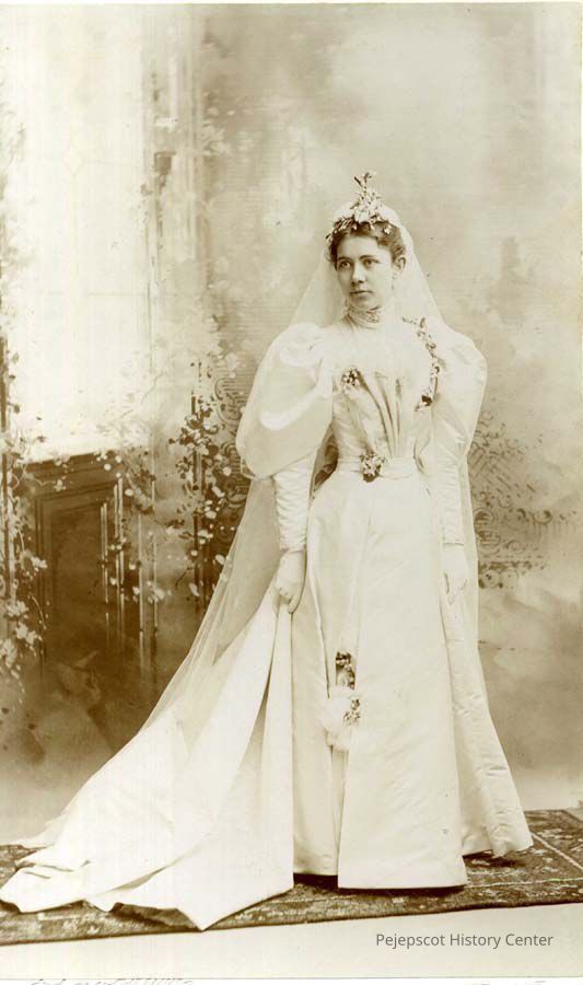 A B/W photograph of Mrs. Rev. Chauncey Goodrich nee Annie Blair Stephens in her wedding gown. 11/27/1894