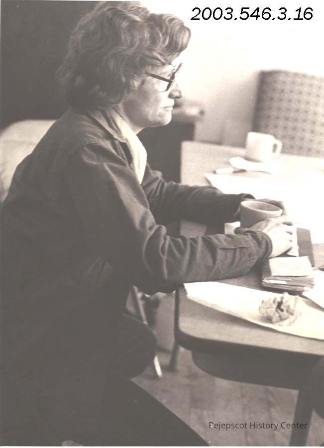 A black and white photograph of Nan Stone, a staff member at Women's Counseling Service in Brunswick, Maine, was taken, in January 1979.