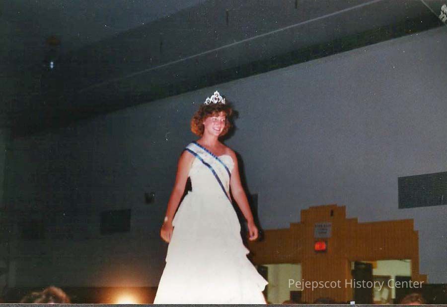 A color photograph of Nancie Turcotte, 1989 Miss Northern New England, returning to the stage.