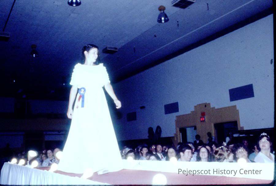 A 35 mm color slide of Nancy Boudreau a contestant in the 1980 Miss Teen Queen Pageant. The slide is marked, "Jul 80" and by a printed "8". She is wearing a tag with the number "2" on it. Sponsored by Christian Youth Organization (CYO).