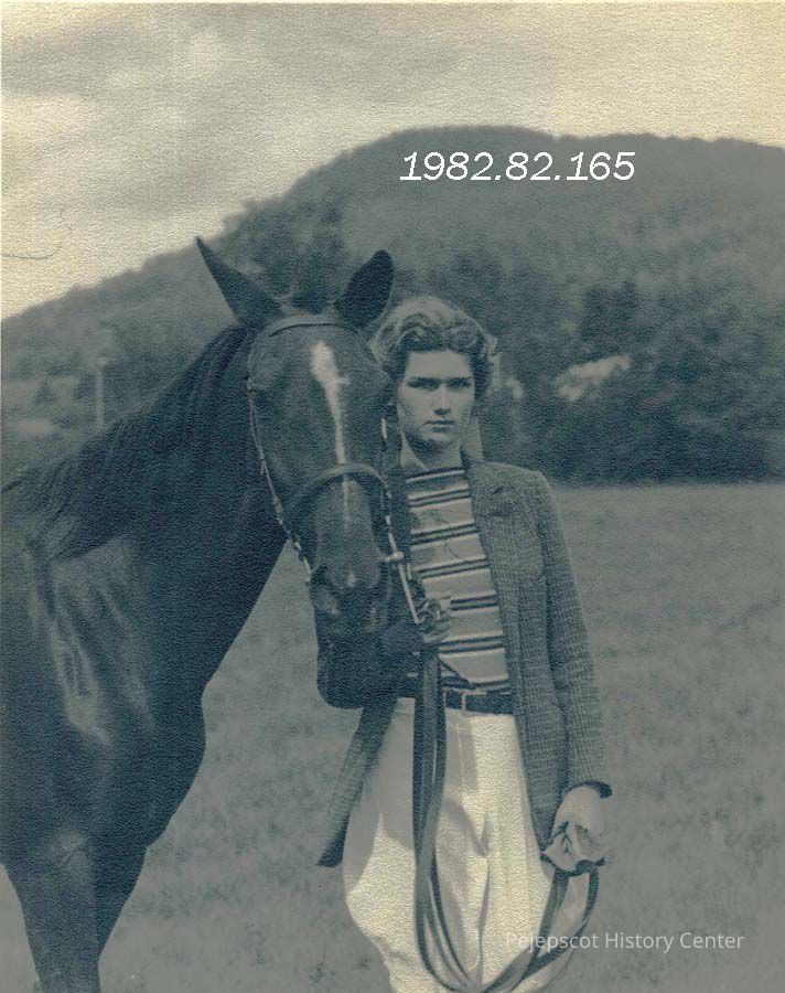 A B/W photograph of Nancy Smith with a horse.