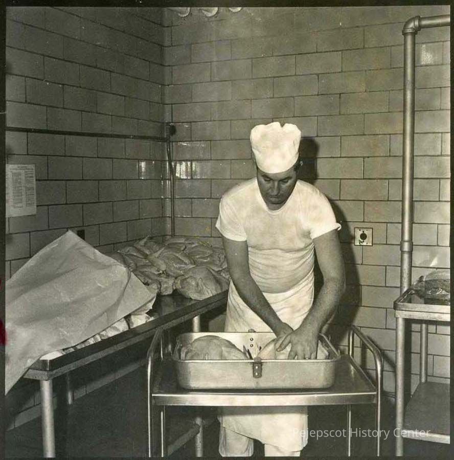 A B/W photograph of a Navy cook at work. Undated