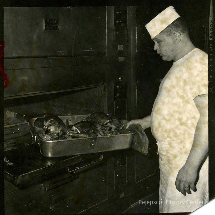 A B/W photograph of a Navy cook at work. Undated