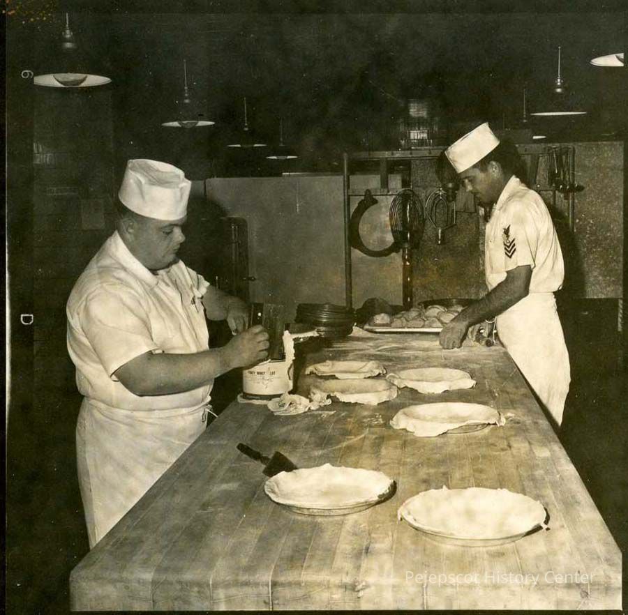 A B/W photograph of Navy cooks at work. Undated
