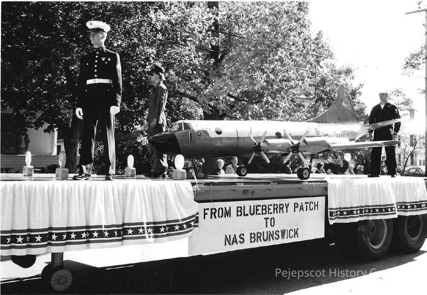 A B/W photograph of the Navy float in Brunswick's 250th Anniversary Parade. 10/7/1989.