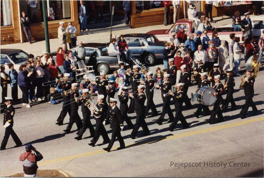 A color photographic view of a Navy marching band in the 250th Anniversary Parade. 10/7/1989