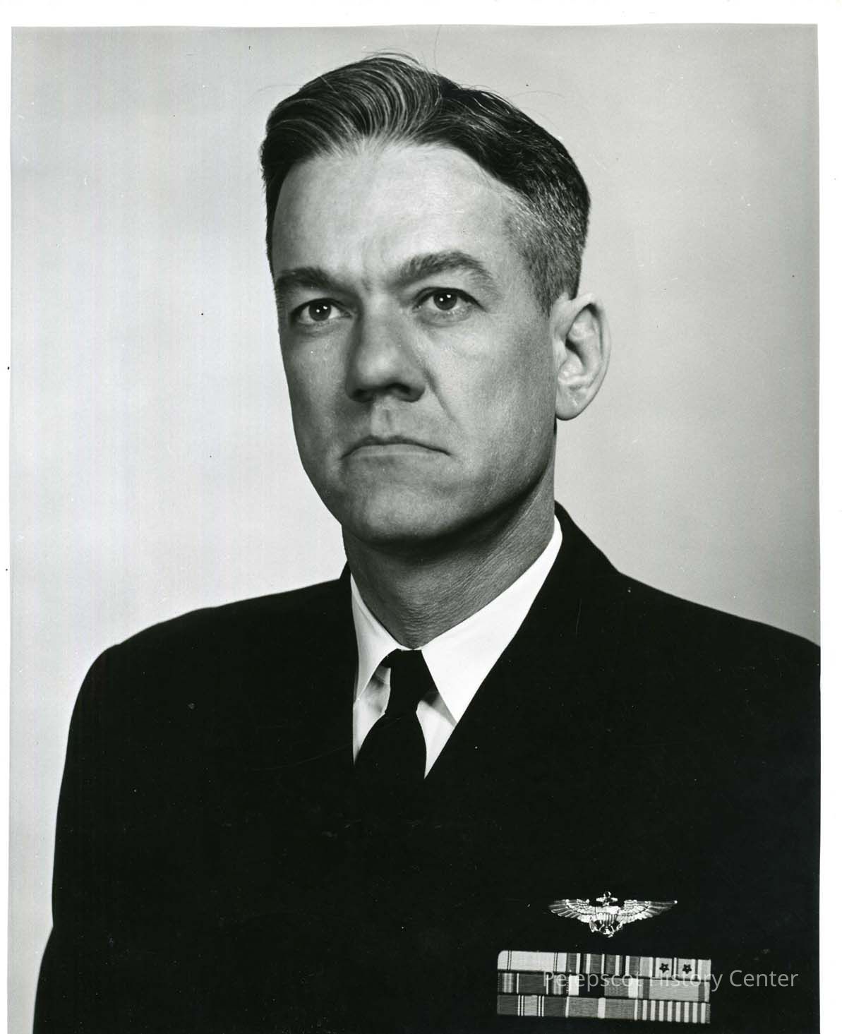 A waist up portrait of an unidentified Navy Officer wearing three rows of ribbons on his chest. Undated