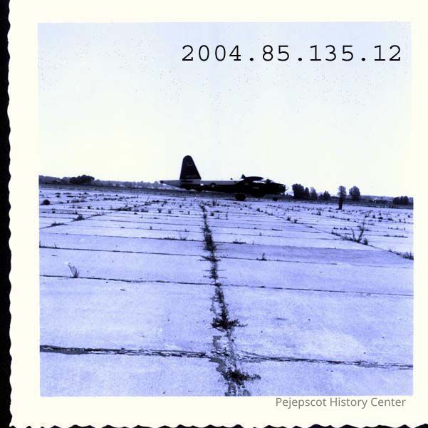 A small B/W photograph of a fighter plane sitting on a runway. Brunswick Naval Air Station H 912