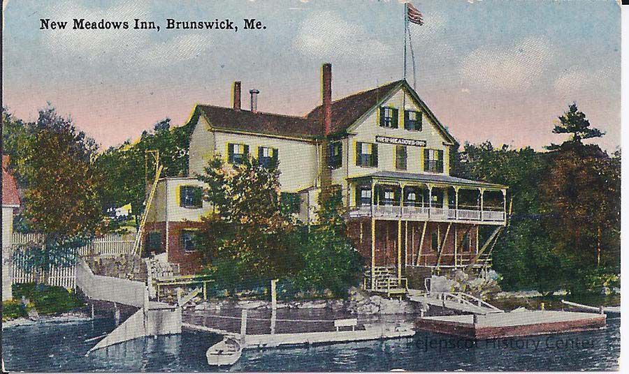 A colored miniature postcard view of the New Meadows Inn. Undated