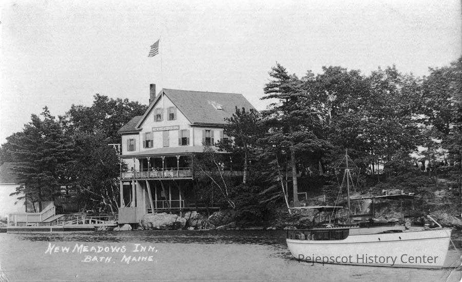 A B/W picture postcard view of New Meadows Inn in Bath, Maine. Undated.