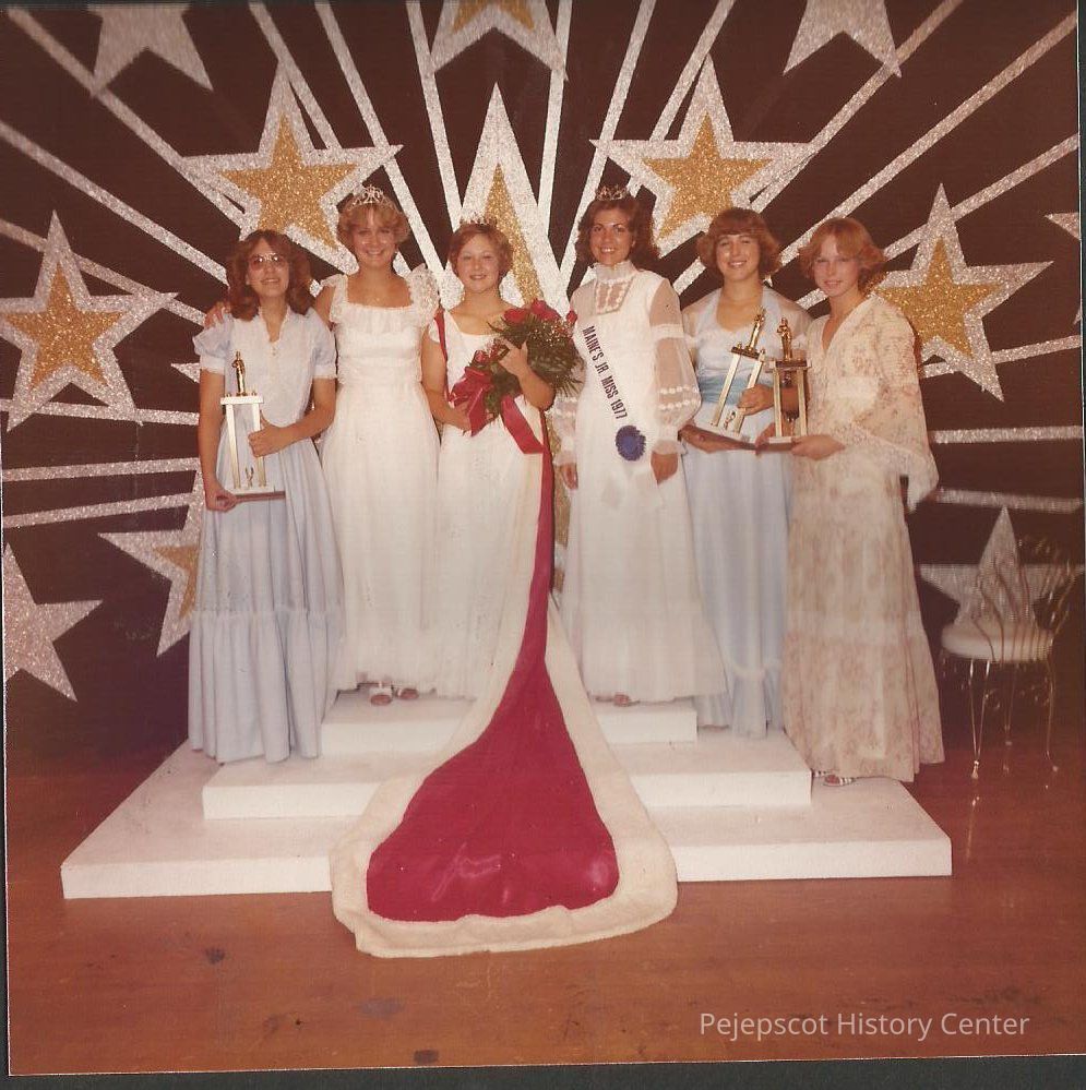 New Queen and runner-up L. to R. 1st runner-up Kathleen Gamache, Becky Beck, Shannon Crane, Maine's Jr. Miss Kathy Gilbert 2nd runner-up Susan Davis and Sarah Stark 3rd runner-up.Collection