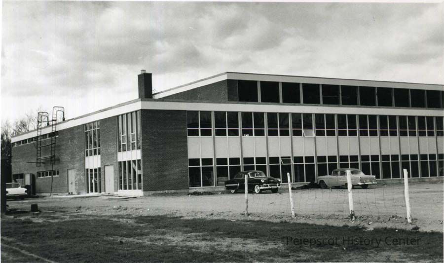 A B/W photograph of the new wing at Brunswick High School, 38 Spring Street, Brunswick, Maine. No longer extant. Dated c. 1962.Collection