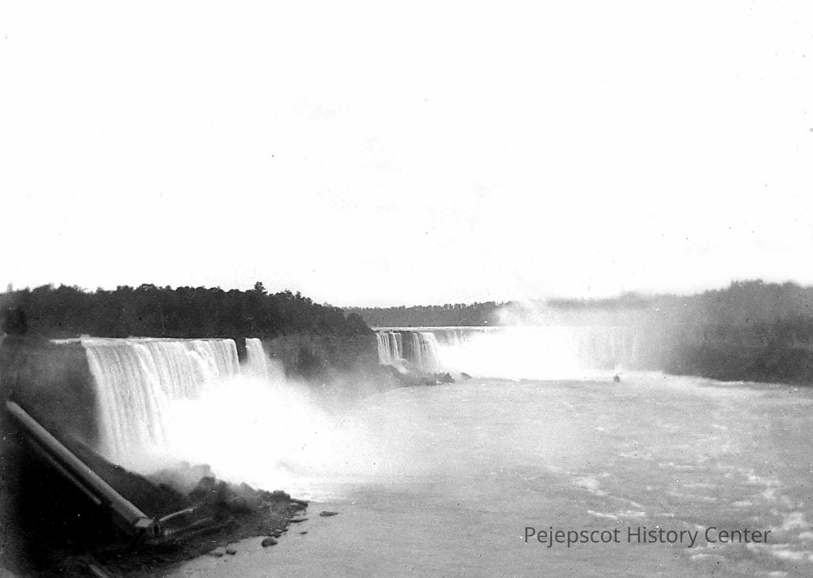 A glass plate negative with a photograph of Niagara Falls, New York. They negative has a sticker with "17" on it. The sticker is in the lower left corner.
