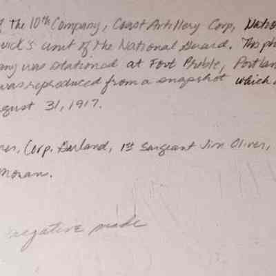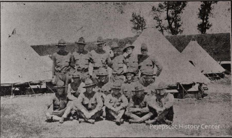 A B/W photographic reproduction of the non-commissioned officers of the 10th Company. This photo was taken at Fort Preble, Portland shortly after they were mobilized. This photo was reproduced from a snap shot which appeared in the Brunswick Record, 8/31/1917. Photo is undated.Lexicon