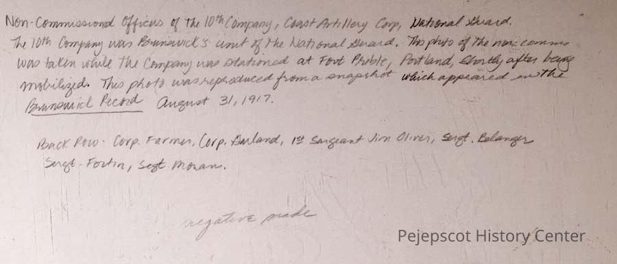 WW I, World War I, Non-commissioned officers, Fort Preble, Brunswick record