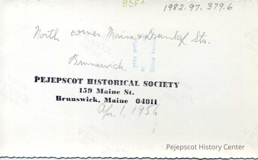North corner of Maine and Dunlap Streets, Brunswick, April 1, 1956Entry/Object ID