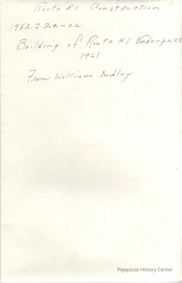 Storage envelope with notes: "Building of Route 1 Underpass, 1961, From William Dudley."