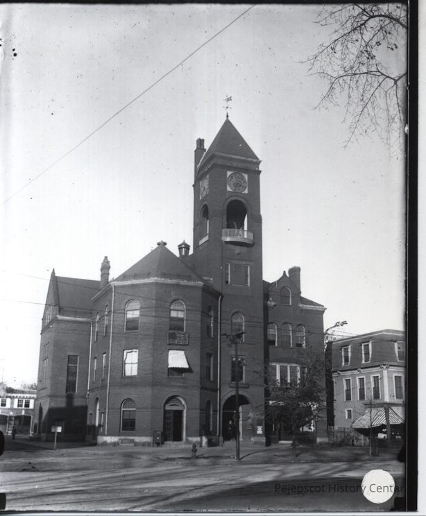 Photo of the old Brunswick Town Hall on Maine Street. It was torn down in 1961.