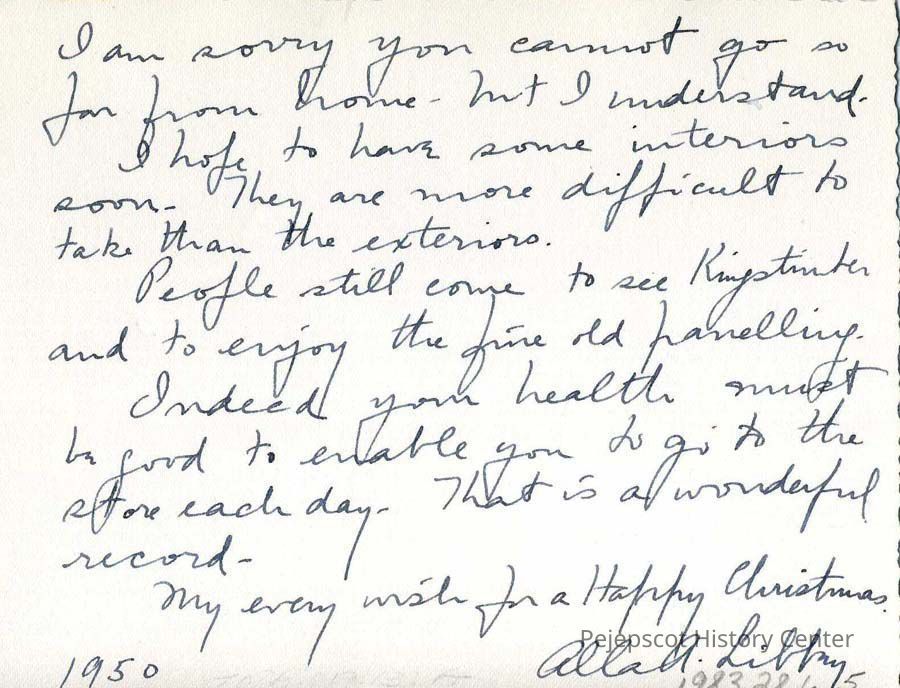 Miss Alla A. Libbey purchased the home in Brunswick and had it dismantled board by board and shipped via rail to Halifax, MA. The house is currently located at 204 Plymouth Rd, Halifax, MA.Collection