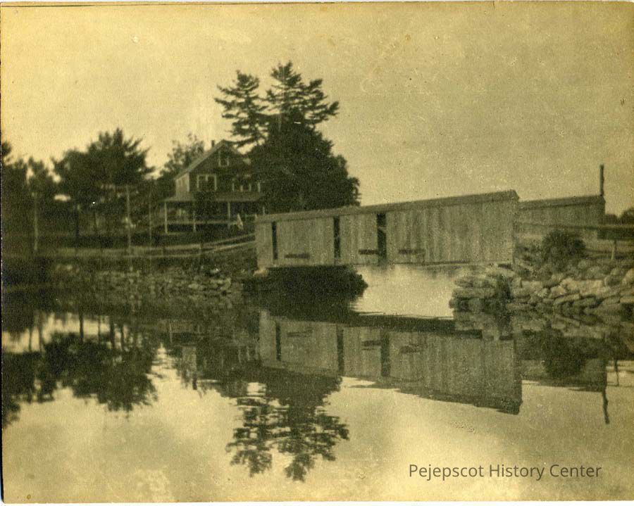 A black & white photograph of the Old Gurnet Bridge going into Harpswell, ME framed in black wood. Undated.