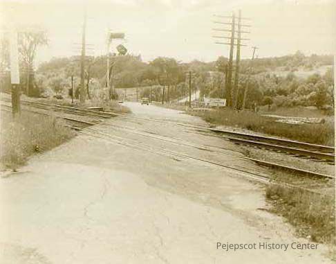 A B/W photograph of the Old Portland Road at Hillside Road intersection. Undated