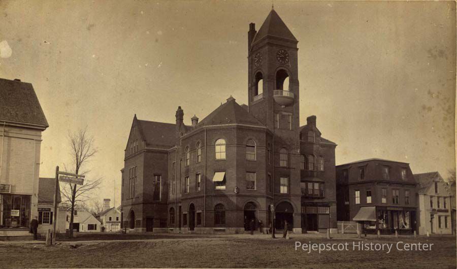 A B/W photograph of the Old Town Hall, Brunswick, Maine. Undated.