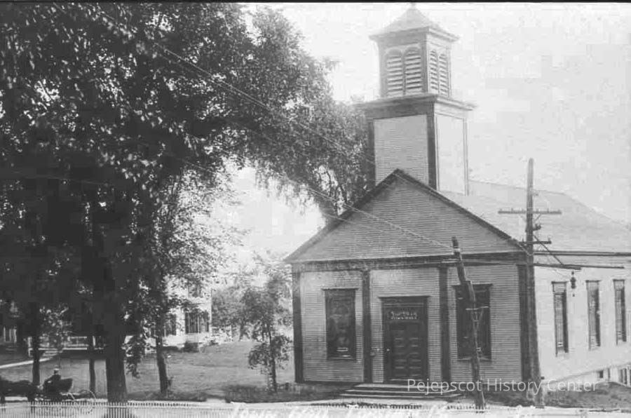 B/W photographic copy of a negative of the Old Town Hall, Topsham. ME. No date.