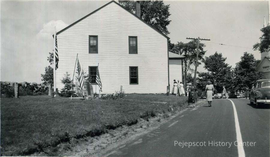 A B/W photograph of the Old Town Meeting House at Harpswell Center, Maine. Photo taken 1959.
