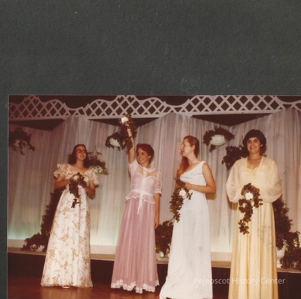 Opening of Gown Competition and second half opening the contestants are performing a dance routine to "You Light Up My Life." L. to R. Marianne Racine, Kathy Jarrell, Stacy Pettigrew and Paulette Racine.Collection