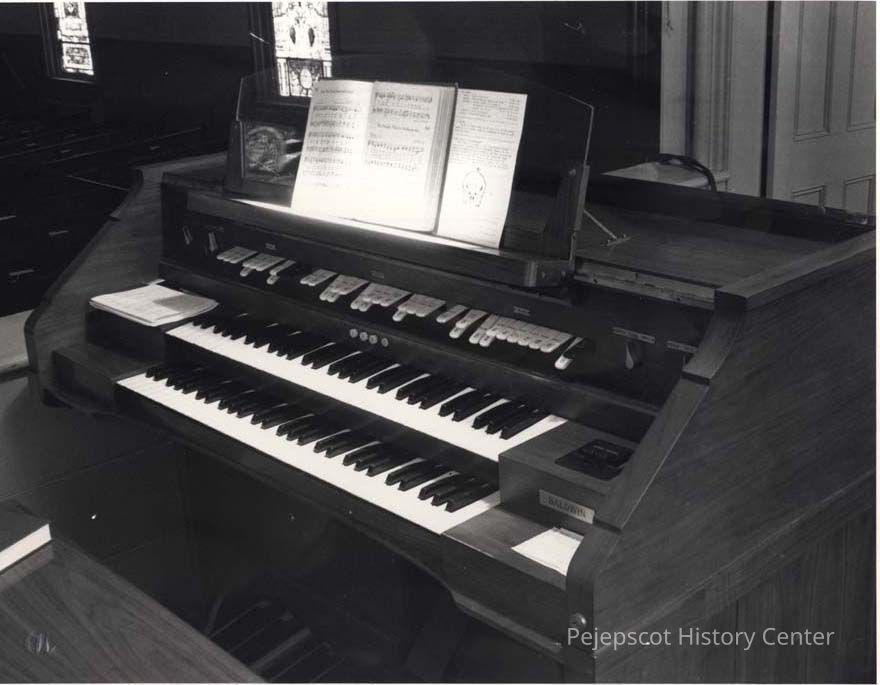 A B/W photograph of the organ in the United Methodist Church. Undated
