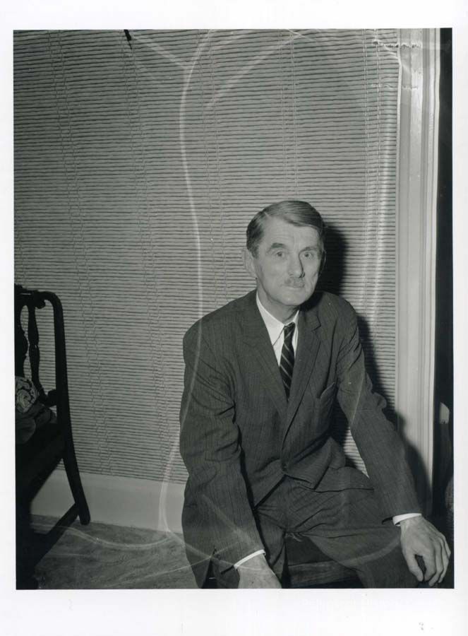 B/W photo of Bill Haddon sitting on a bench. He is the organist at the First Parish Church and the Naval Air Station.