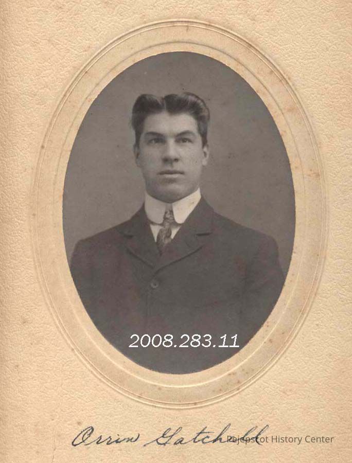 A B/W oval shaped photograph of Orrin Gatchell as a young man. Undated