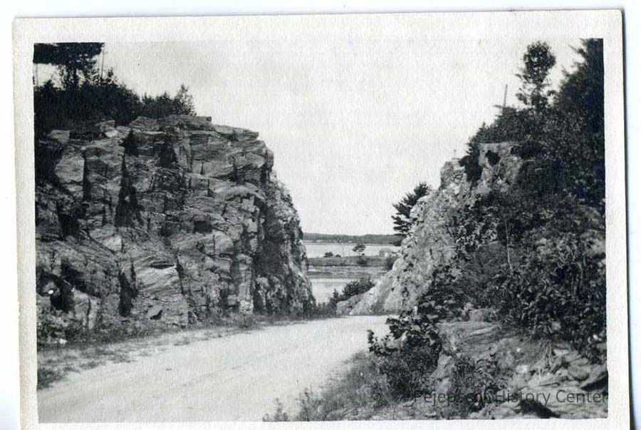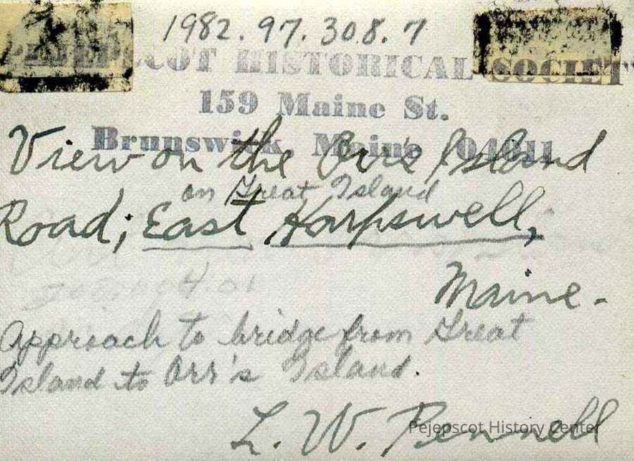 B/W photo of a view on the Orr's Island Road, East Harpswell, Maine.