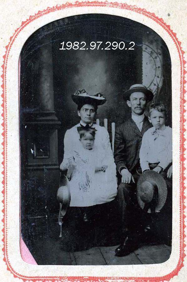 A B/W photograph of the Pennell family, Osborn, Carrie, Lawrence and Alice Pennell.