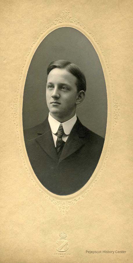 Black & white photograph of Osgood Pike, father of Asa Pike III, Fryeburg. Shows a young man in oval cream-colored matte.
