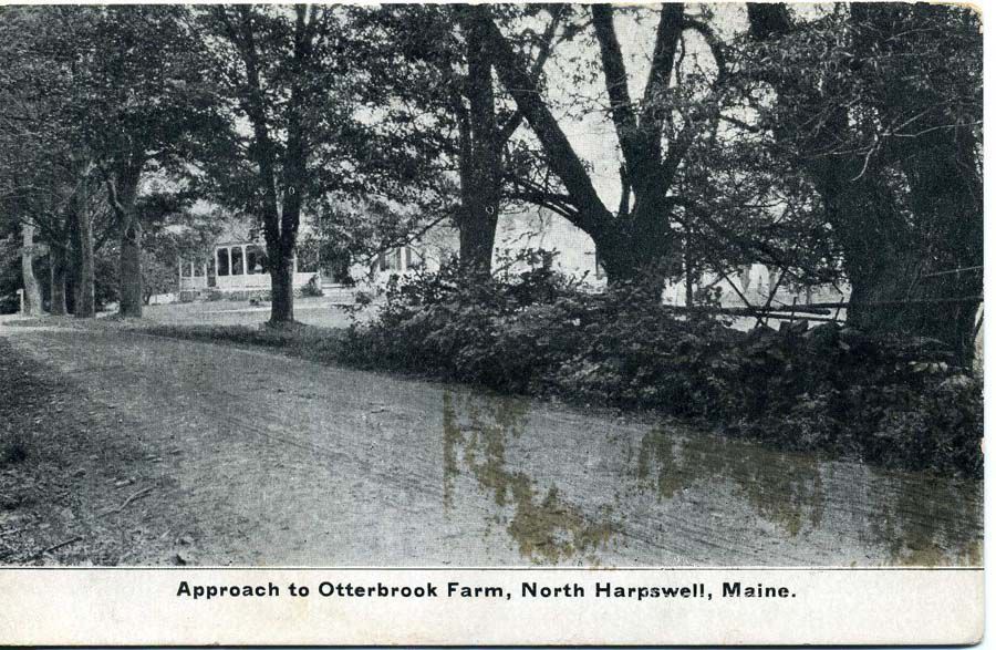 B/W postcard view of the approach to Otterbrook Farm, North Harpswell, ME. Home of George & Mary Dunning. Not dated.