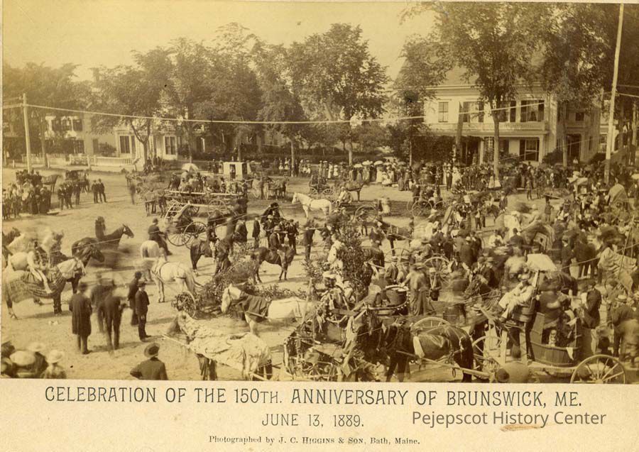 150th Anniversary - Brunswick, Celebrations - 150th Anniversary of Brunswick, Celebrations - Brunswick, Streets - Maine Street, Houses - Maine Street, Horse